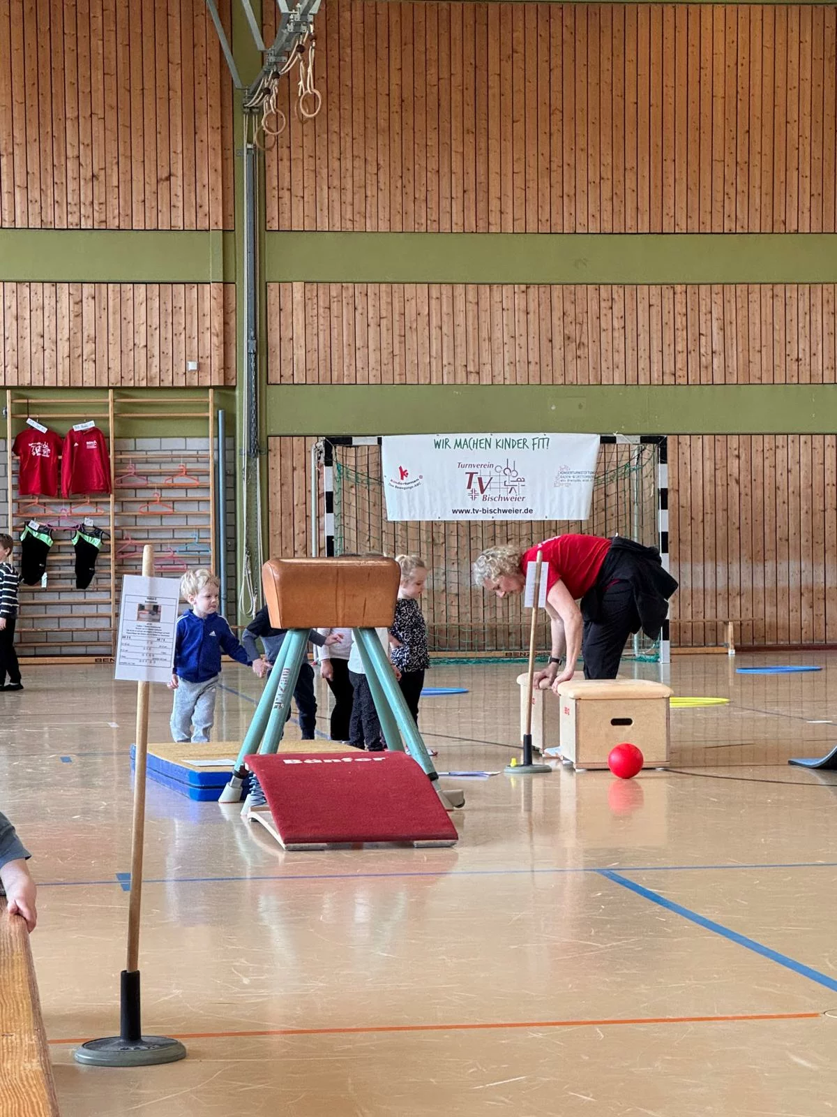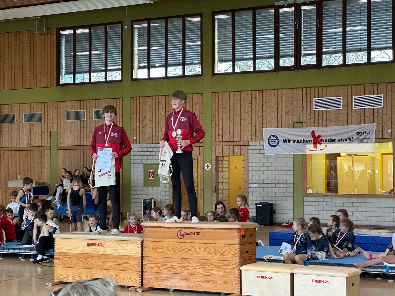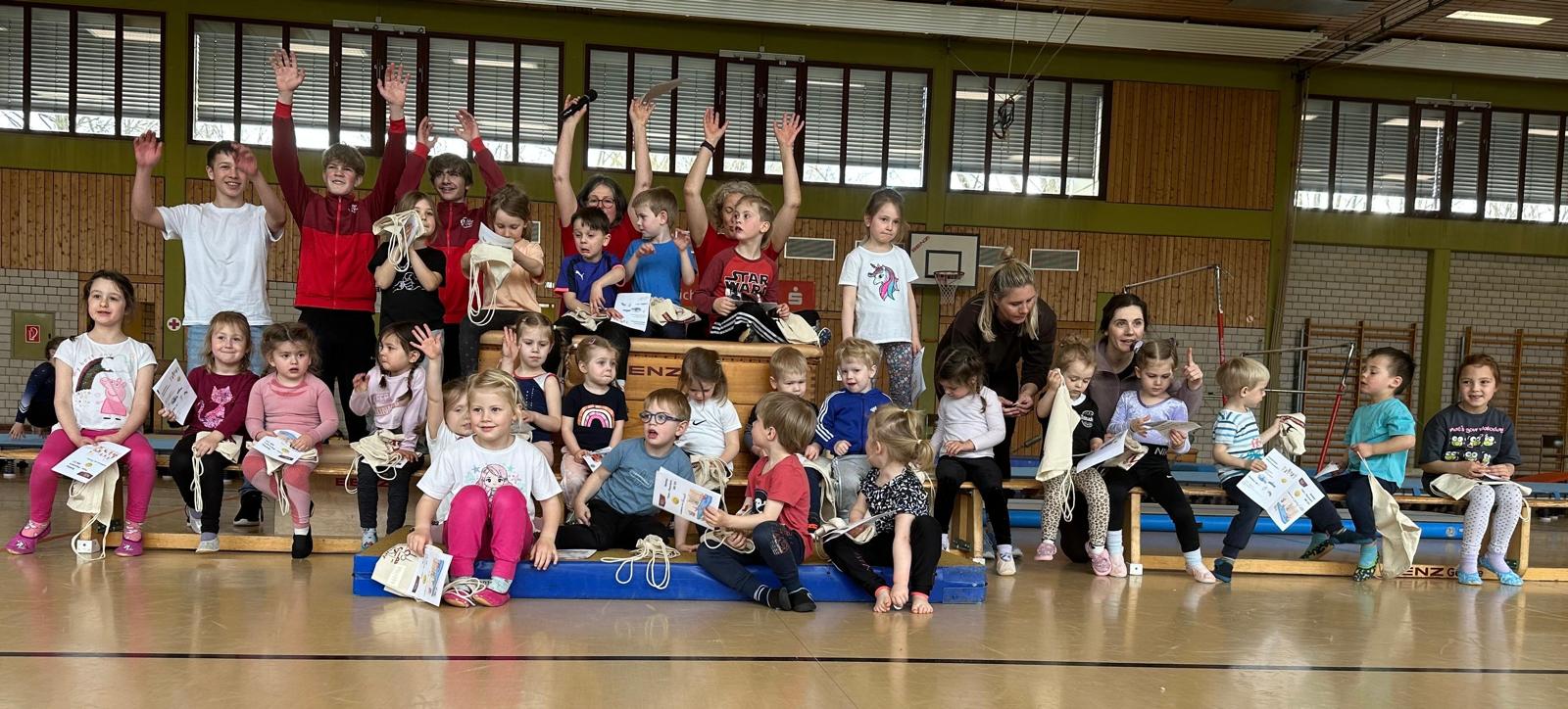 Unter den Augen von zahlreichen Zuschauern starteten am Morgen unsere Jüngsten mit 10 Stationen von Klimmzügen über Strecksprünge auf dem Trampolin, Balancieren auf einem dicken Tau, Zielwerfen, Laufen, Rollen und Springen in den Tag. Sie wurden belohnt mit einer Urkunde und Ihrem neuen Turnbeutel.