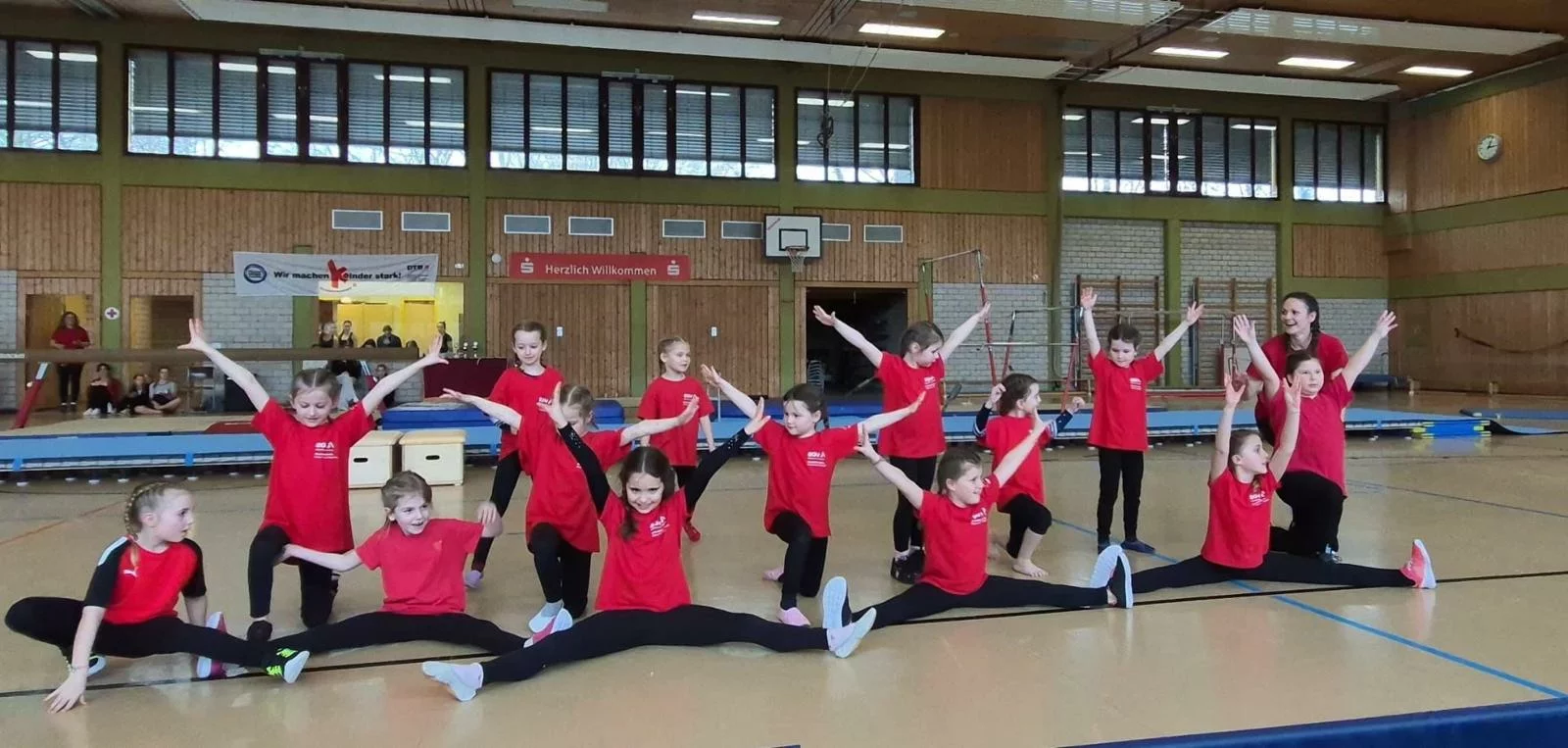 Mit Spannung wurde der Siegerehrung entgegenfiebert, mit großen Augen staunten die Anwesenden und vor allem die jüngeren Kinder während der Darbietung unserer Verbandsliga Mädchen welche Kürübungen aus ihrem Wettkampfprogramm zeigten.Unsere Mädchentanzgruppe eroberte die Herzen mit einem Rhythmischen Tanz zu Clap your hands, was sich das Publikum nicht zweimal sagen lies.